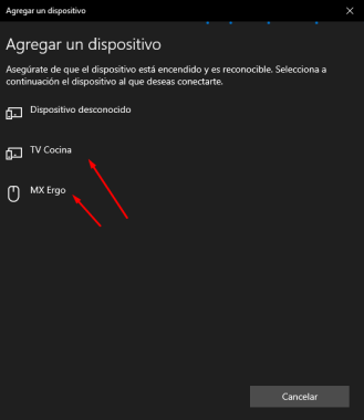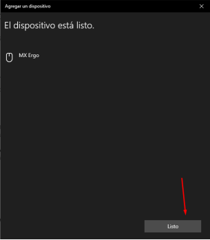 5. Escoge el dispositivo que deseas conectar de la lista, para el ejemplo, vamos a conectar el mouse MX Ergo, entonces le damos click (en tu caso debes darle click a tu dispositivo a conectar).