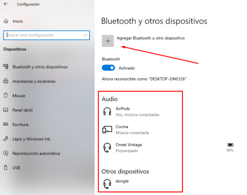 3. Haz click en agregar Bluetooth u otro dispositivo.