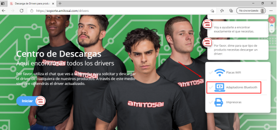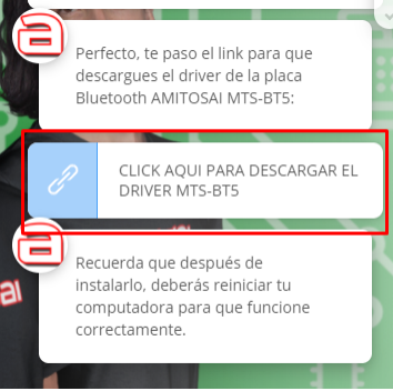 2. Selecciona el adaptador correcto. En este caso sería MTS-BT5 y aguarda a que el asistente te envíe el link de descarga.