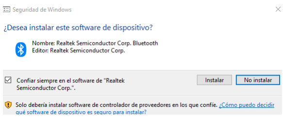7. Antes de finalizar la instalación, debes autorizar la instalación de los drivers.