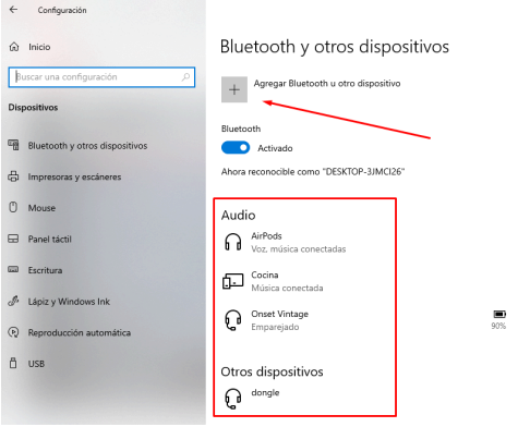 3. Haz click en agregar Bluetooth u otro dispositivo.