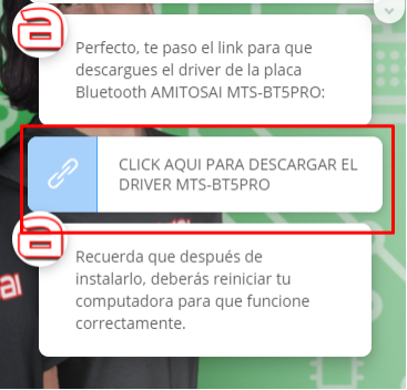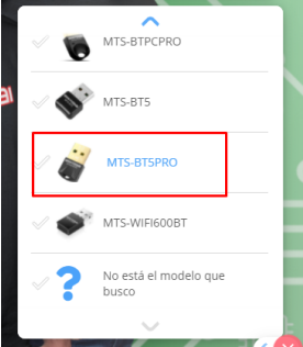 2. Selecciona el adaptador correcto. En este caso sería MTS-BT5PRO y aguarda a que el asistente te envíe el link de descarga.