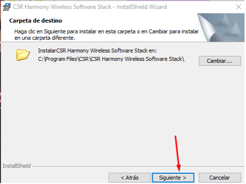 6. El sistema te preguntará donde quieres instalar el driver, déjalo tal como está y dale click a "Siguiente"