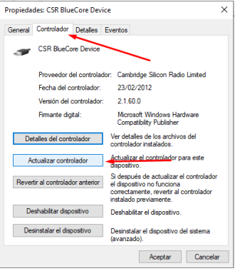 Es probable que Windows tenga instalado el driver de un dispositivo Bluetooth anterior (aunque no lo sepas, pudo descargarse de manera automática en cualquier momento) y a pesar de instalar el driver correcto, continuar utilizando el anterior.