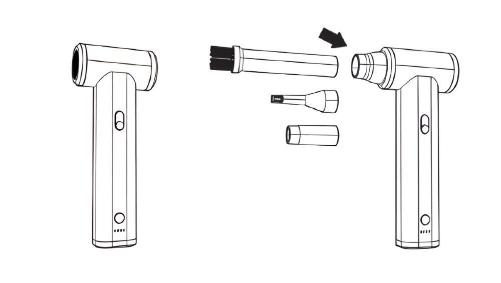 El uso como soplador permite limpiar todo tipo de superficies, tales como computadoras, autos, ventanas y cualquier otra superficie donde se acumule polvo mediante el soplado de aire a gran velocidad, obteniendo resultado similar al que se obtiene al utilizar un sistema de aire comprimido en aerosol o compresor. En este modo se pueden utilizar los picos estándar, cepillo, inflador o alta presión. EL pico estándar ingresa a rosca, el resto de los picos se colocan a presión sobre el pico estándar.