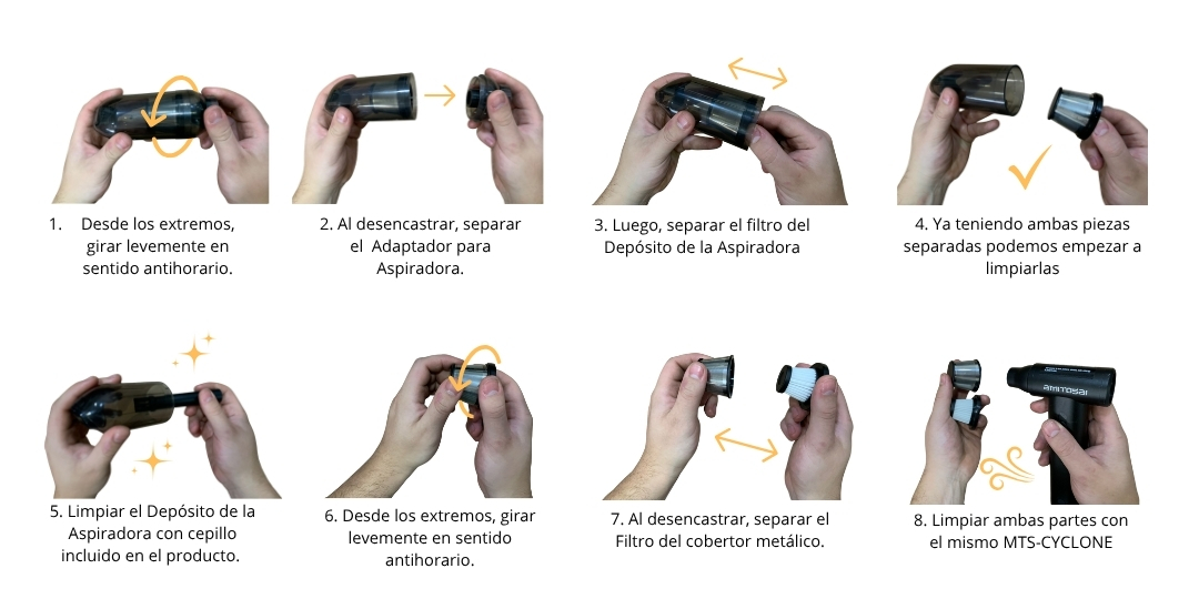 El soplador de aire y aspiradora MTS-CYCLONE de AMITOSAI es una herramienta moderna y de alta potencia, diseñada para múltiples funciones que ayudan a mantener limpios diferentes entornos y dispositivos. Con su diseño portátil, motor de 125.000 RPM , batería recargable y una amplia variedad de accesorios se convierte en la solución mas versátil, duradera y eficiente del mercado.